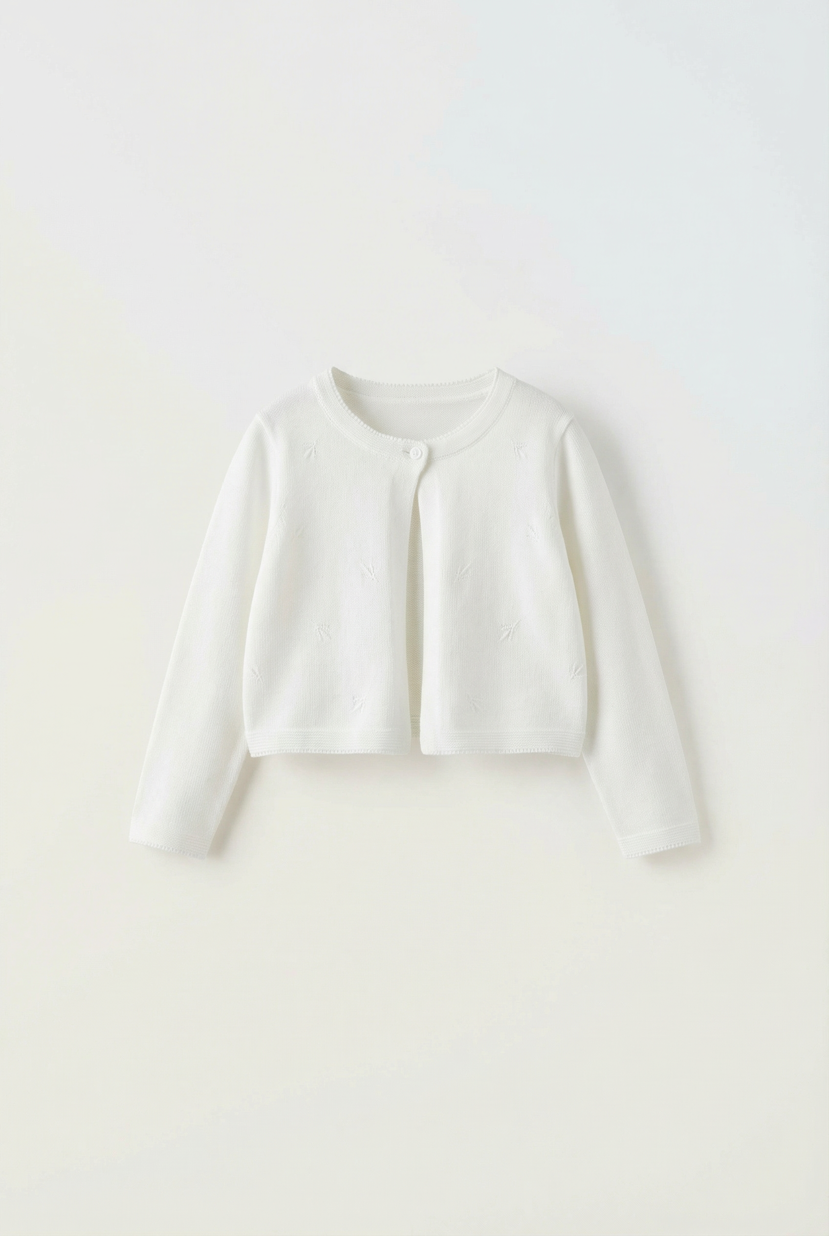 Elegantes Mädchen Bolero Malena - Cremeweiß mit Strukturmuster