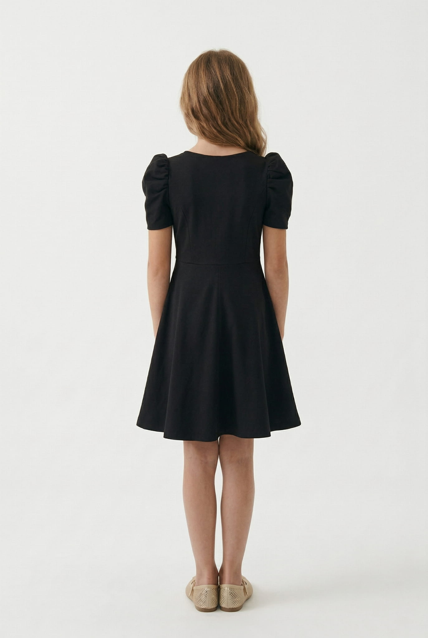 Elegantes Schwarzes Mädchenkleid Vesper - Festliches Kleid mit Raffungen